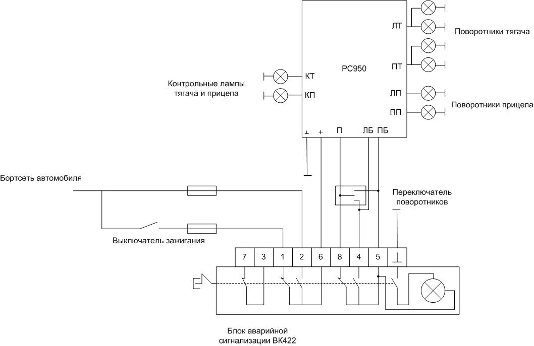 Всички устройства са свързани към бордовата мрежа чрез алармени блокове. Генерираните импулси се подават през превключвателя на мигачите към лампите. Например, е показана диаграмата на мигачите на реле 495.3747 в диаграмата на автомобил VAZ-2110.