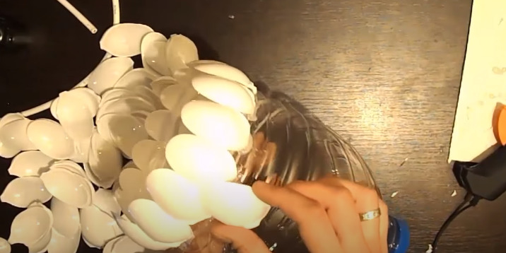 Házi készítésű termékekhez szinte bármilyen műanyag alkalmas lehet: eldobható edények, vízpipák, gyerekjátékok. Az egyik legegyszerűbb módja a gyönyörű eredmény elérésének egy üveg és eldobható kanalak használata. Az eredmény egy olyan kialakítás, amely némileg emlékeztet egy kúpra.