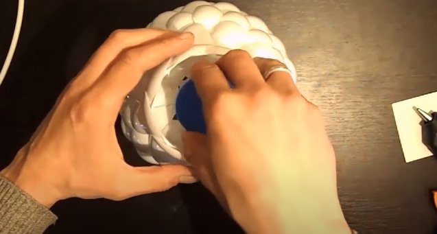 - Ily módon addig kell ragasztani, amíg a lámpatestből ki nem jön egy szabad hely egy izzó számára. A jobb rögzítés érdekében a szirmokat ideiglenesen gemkapcsokkal rögzítik, amelyeket ezután el kell távolítani.