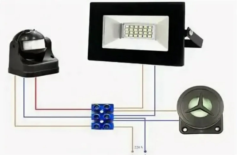 Схема за свързване на сензора за движение към LED прожектора