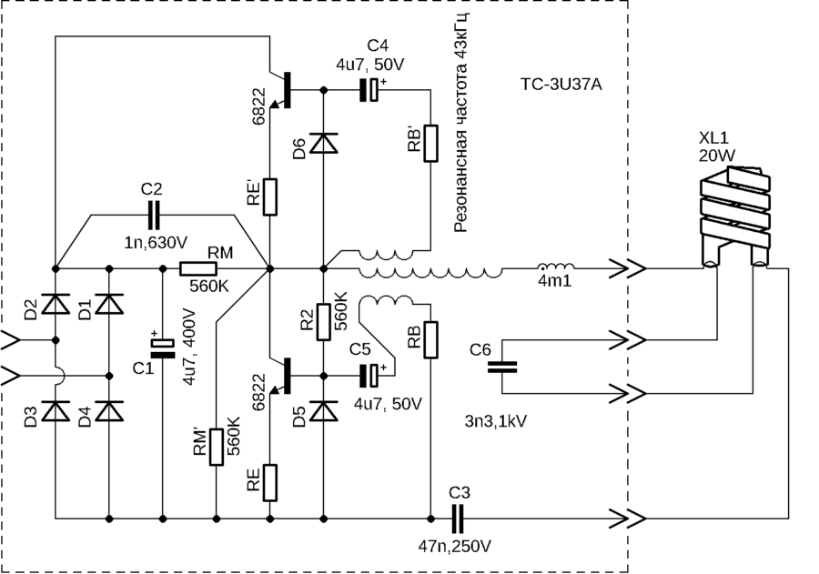 Схема на енергоспестяващи лампи