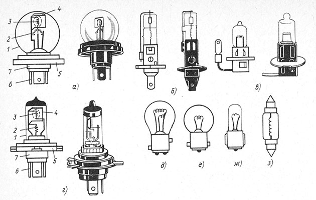 Основните видове лампи с нажежаема жичка са:
