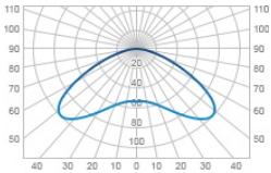 - Lysfordelingen til utstyr viser hvordan lys vil spre seg på en gitt overflate.Dette øyeblikket er viktig av den grunn at enhver lampe fordeler lys ujevnt, derfor er designen utviklet på en slik måte at den leder maksimal strøm til et gitt område. Dette gjøres ved å konfigurere kuppel, reflektor, lampetype og posisjon.