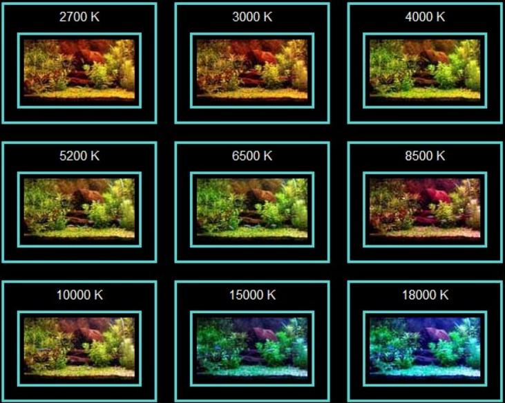 - Цветна температура - индикатор, от който зависи как се възприемат околните обекти. Измерва се в Келвин. И така, по обяд, когато слънцето е в зенита си, неговата яркост е приблизително 5500 К. Тук трябва да запомните, че твърде слабата светлина излъчва жълтеникавост, а твърде бялата изкривява цветовете. За растенията диапазонът от 6500 до 8000 K е най-подходящ, в зависимост от вида, рибите се нуждаят от 5500 до 20 000 K, а рифовете се нуждаят от 9000 до 20 000 K.