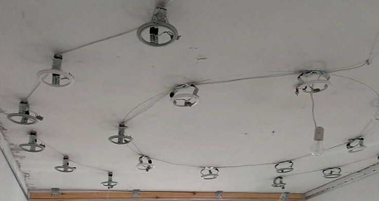 На балкона можете да извършите скрито окабеляване, като го поставите върху рамката на окачения таван, като в този случай не е необходимо да прикрепяте кабела. В този случай използването на гофриран ръкав е задължително.