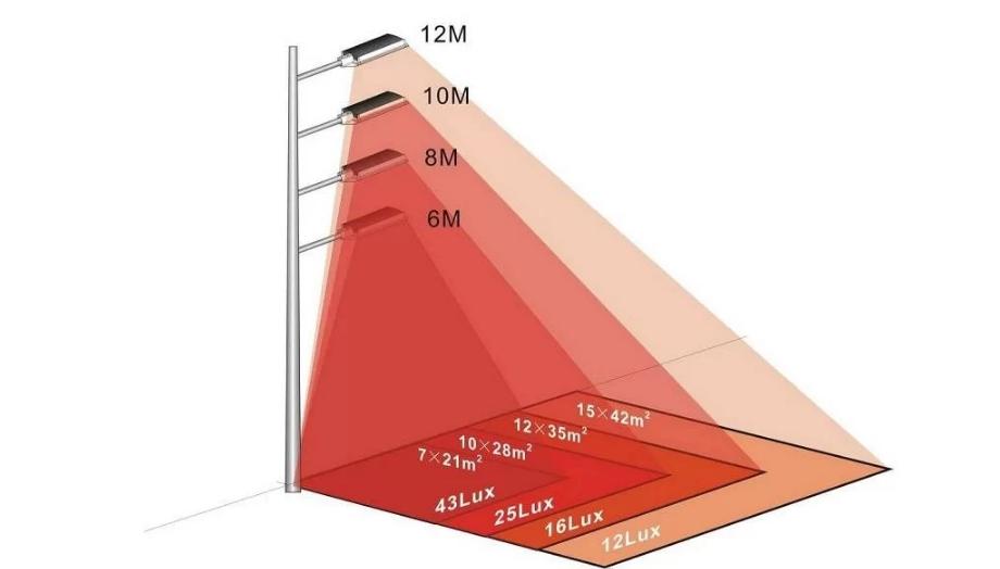 Височината на стълба за улично осветление е адаптирана към околните условия, като се вземат предвид всички обекти, които могат да пречат.