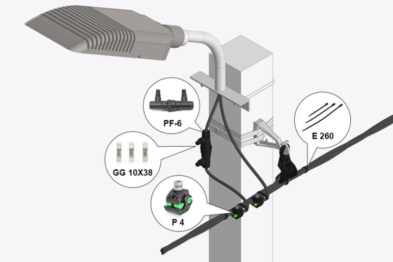 За организиране на електрически линии, които захранват фенерите, е необходимо да се използват само продукти от меден проводник. Въпреки че сега има тенденция към широко приемане на алуминиеви проводници, но от техническа гледна точка медта има само предимства, въпреки че губи в икономиката. Напречното сечение на проводниците за осветителните мрежи зависи от натоварването, но в повечето случаи 1,5 кв. мм е достатъчно, за да се осигури текущата пропускателна способност. Трябва също да се има предвид, че фенерите могат да бъдат разположени на значително разстояние от разпределителния шкаф, така че трябва да се извърши допълнителна проверка за загуби на напрежение. Спадът на напрежението в линията зависи от: