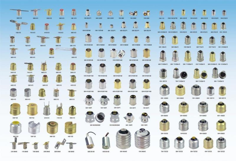 - rosqueado Socles Edison, denotado pela letra E e um número que mostra o diâmetro externo do fio em milímetros, varia de E5 - socles para lâmpadas microminiaturas a E40 - para as lâmpadas mais potentes, principalmente iluminação industrial;