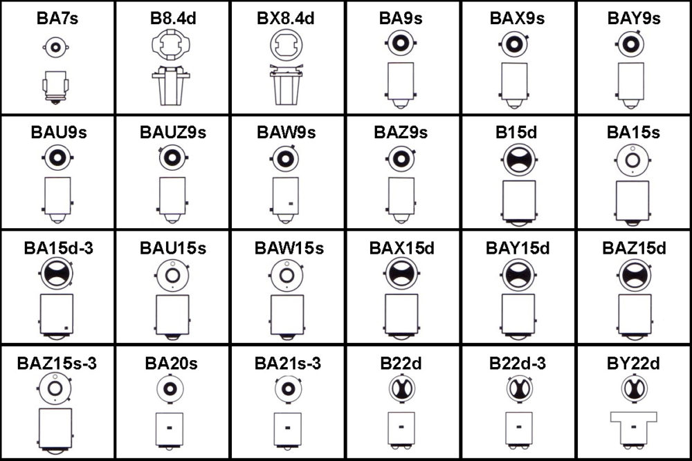 - baioneta ou alfinete - o nome vem da palavra francesa "baginet" ou baioneta, caracteriza-se por não cair do cartucho durante as vibrações, é usado em veículos - carros, aviões, navios e navios, trens e bondes, etc. Um dos nomes - Base Swan - em homenagem ao inventor.