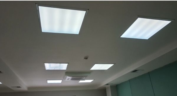 Таванните панели активно заменят от пазара осветителни тела с флуоресцентни крушки, които се монтират в офиси. Тази опция в момента не е налична.В стая, където практически няма спадове на напрежението, диодите могат да издържат до 20 години. Когато са монтирани на опънат таван, те изглеждат оригинални, съчетани с дизайна на стаята. Можете да регулирате интензитета на светлината.