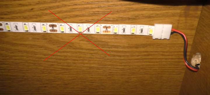 - залепване на лентата с лепило директно към алуминиевия профил. Това ще доведе до късо съединение;