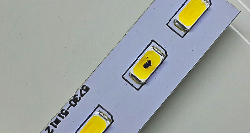 Трябва да се провери качеството на запояване. Ако е направен дефект в производството, това ще повлияе на живота на диодите. Когато изгорелият чип бъде идентифициран, трябва да вземете поялник и пинсети. Горелката трябва да е от другата страна на дъската. Когато спояването омекне, диодът се отстранява с пинсета. Новият чип трябва да бъде фиксиран преди алуминиевата основа да изстине.