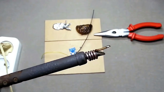Ако няма поялник с тънко острие, можете да направите дюза от медна тел.