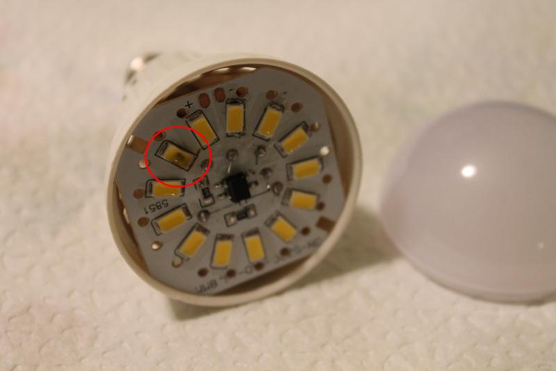 Когато някой от чиповете се повреди, това не е причина да изхвърлите крушката, а може да бъде поправи. За да направите това, имате нужда от тестер, за да определите повредата, след което можете да замените повредения елемент или да свържете веригата. В последния случай ремонтът ще повлияе негативно на живота на лампата, тя ще стане по-тъмна. Ето защо е по-добре да замените чипа с друг. За да направите това, трябва да знаете как да запоявате светодиоди.
