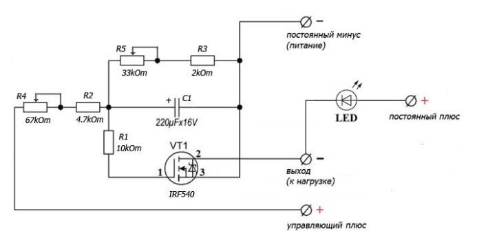 За да можете самостоятелно да регулирате продължителността на изключване и включване, към веригата се добавят резистори.